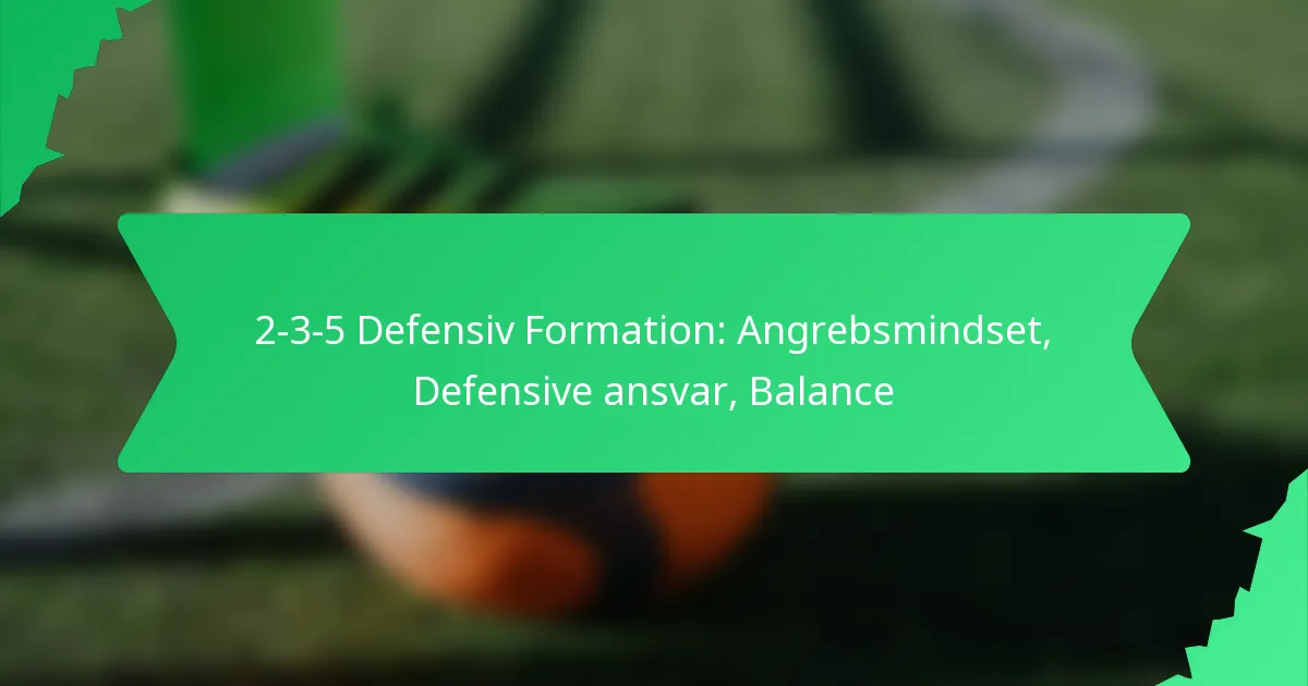 Den 2-3-5 defensive formation er en taktisk opstilling i fodbold, der har to forsvarsspillere, tre midtbanespillere og fem angribere, hvilket understreger en offensiv tankegang. Denne formation prioriterer ikke kun offensivt spil, men kræver også en struktureret tilgang til defensive opgaver, hvilket sikrer, at holdene kan opretholde integritet, mens de hurtigt skifter mellem angreb og forsvar. Ved at balancere disse elementer skaber 2-3-5 muligheder for scoring, samtidig med at der lægges pres på modstanderne.