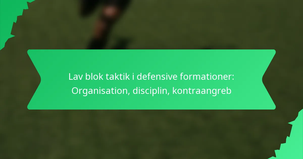 Lav blok taktik i defensive formationer involverer at placere spillere dybt i deres egen halvdel for at begrænse modstanderens angrebsoptioner. Denne strategi afhænger af stærk organisering og disciplin, hvilket gør det muligt for hold at absorbere pres, mens de forbliver parate til at udnytte muligheder for kontraangreb. Ved at opretholde kompakthed og klare roller kan hold effektivt forsvare sig mod trusler og hurtigt skifte til offensive spil, når muligheden opstår.